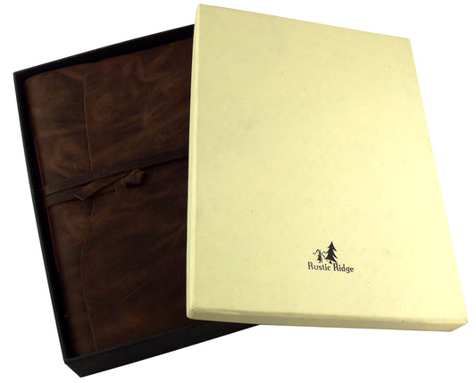 Large Genuine Leather Journal/Sketchbook with Gift Box - 380 Pages - 9" x 12" - Rustic Vintage Style
